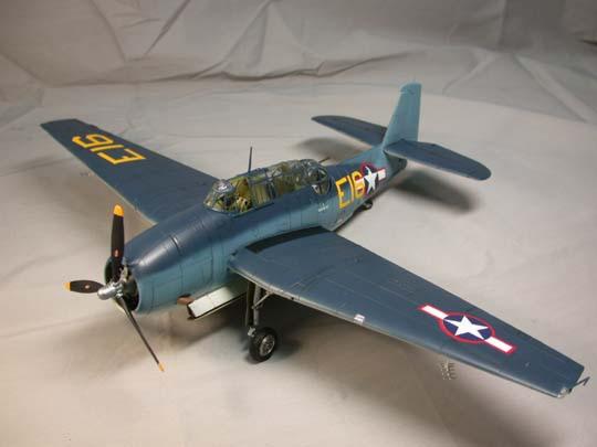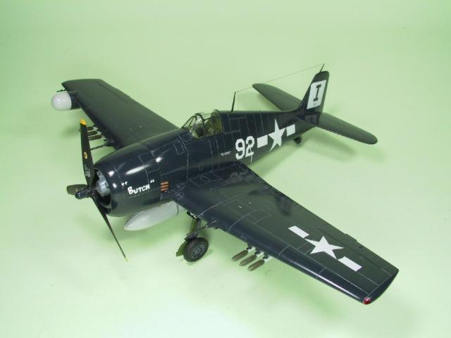 야간 전투용 gloss sea blue 도장을 한 F6F-5N Night Hellcat 으로 F6F-5 과 차이점은 주익에 20 밀리 기관포가 장착되고 주익에 AN/APS-6 레이더가 붙으며 소염기의 형태가 달라지는 점 등입니다,