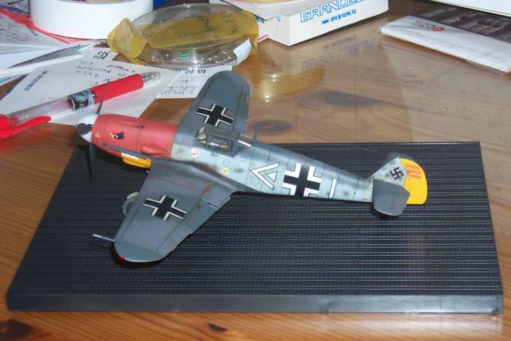 키트는 당연히(?) 하세가와의 109F입니다. 한스한(이사람은 JG2에서 대부분의 기간을 활동한 108기 격추의 슈퍼에이스로,BOB에이스중 한명인 한스 폰 한하곤 틀림 사람입니다.)의 F형의 경우.. 자료마다 도색 지정이라던가.. 형식에 대한것이 제멋대로인데... 결론적으로 지멋대로(?) F-1형으로 가정해서 만들었고,도색은 에어로마스터의 도장예를 따랐습니다.