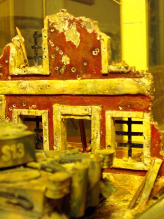 건물을 지점토로 한것이 낭패를 본거 같네여. 많이 수축이 일어나서 휘어지고 뒤틀려지고... 인조물다운 느낌이 없고 손으로 조물락 거린 느낌이 강하네여. 아쉽습니다.다음엔 석고를 써볼까 합니다.