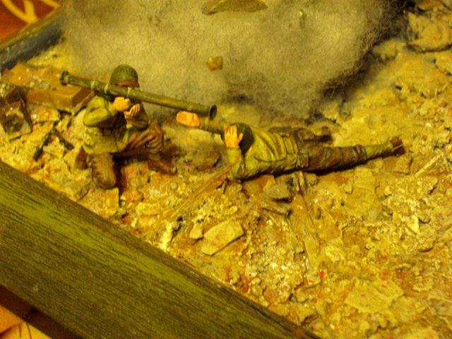 인형은 아쉬움이 많이 남네여.. 모자를 잡고있는 병사는 바추카를 잡은 사람에게 "피해!" 라고 하는거처러 보이게 하려고 개조 했구여 ..근데 바추카 쏘는 사람이 옆의 폭발에도 아랑곳 않는것이 어색합니다. 모자라도 날라가게 할껄..^^: