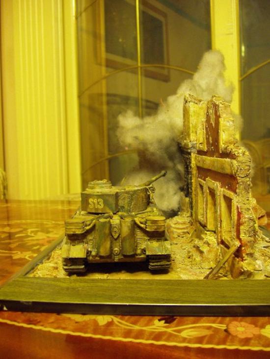 처음 만들어본 소형 디오라마 입니다. 많은 시행착오가 있었고 너무 아쉬움이 많이 남습니다. 아카페에 출품을 했습니다만..미군의 바추카 런터가 계란에 해당하고 티이거 탱크가 바위에 해당합니다. 미군옆에 티이거에 의해 폭파되는 건물을 이용해 화력을 대두시킴으로써 주제를 부각시키는데 일조하고자 하였습니다.