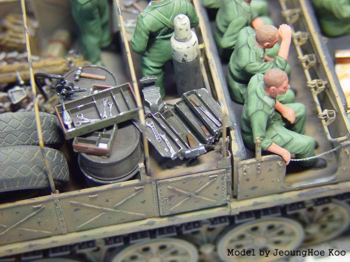 페인트 벗겨진 표현은 져먼그레이에 무광검정과 소량의 건메탈을 섞어서 모서리 위주로 해주었습니다...(워낙 대형차량 이다보니 상당히 지루한 작업이었습니다 ㅡ.ㅡ;)