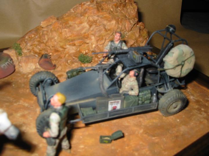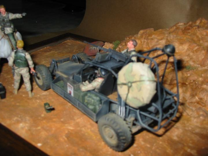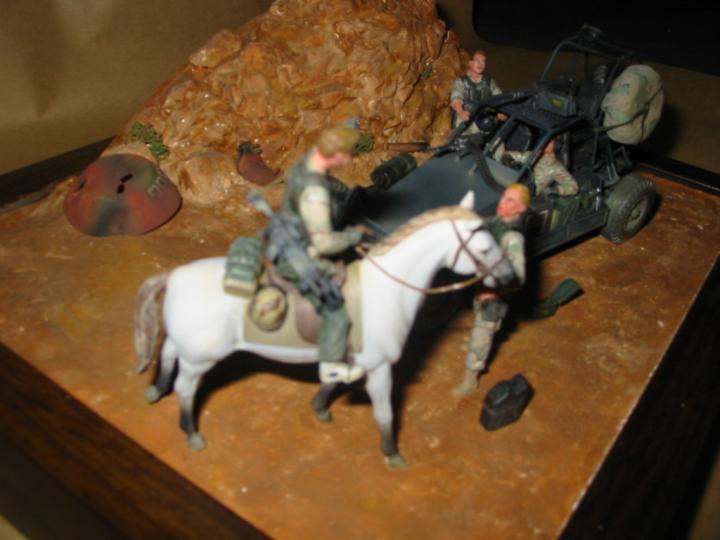 오늘 디카꺼낸김에 탄력받았습니다.^^ 배경은 아프카니스탄이구요..SEAL의 특수차량인 FAV(패스트 어택 바이클)는 자작했습니다.. 사진이 조금붉게 나왔네요..물론 말에탄 인형두 이것저것조합해서 만들었습니다..