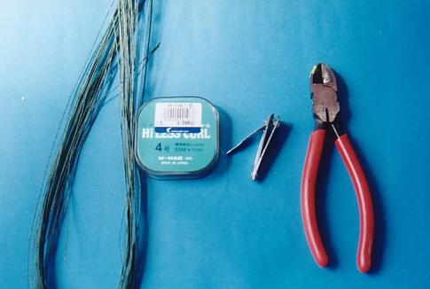 그리고는 적당한 크기로 잘라낸 철사를 하나하나 박아가고 여기다가 낚시줄을 엮으면(?).....