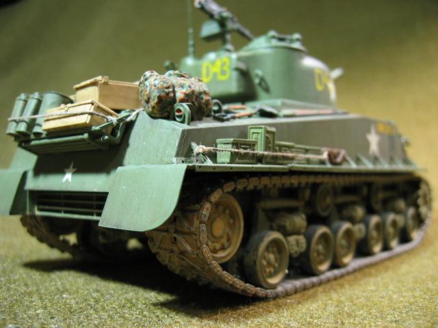 기본은 타미야, 하체 HVSS는 아카데미 슈퍼셔먼 에서, 휀더 앞,뒤.옆은 플라판으로 자작.험브롤 102번 붓칠, 필터링 처음 시도.