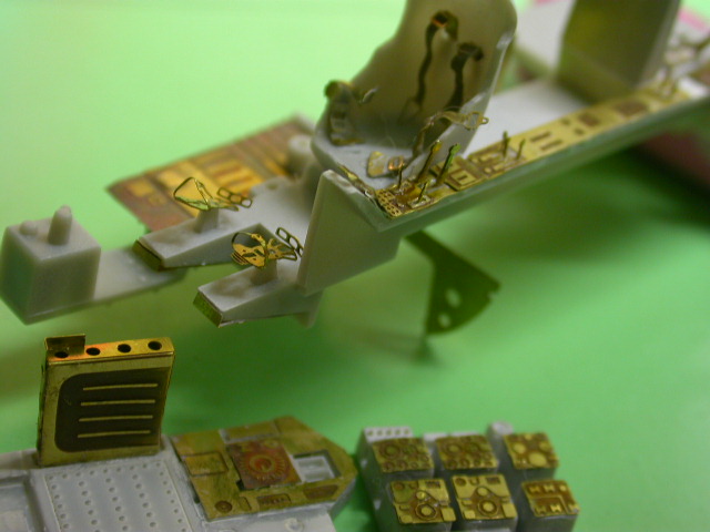 에듀어드 에칭및 키트에 들어있는 에칭을 이용 조종석 부분과 시트벨트 및 각종 기관총류 디테일 작업 및 총신 구멍 다 뚫어 주었읍니다. 그리고 너무 밋밋한 기체 주익과 동체