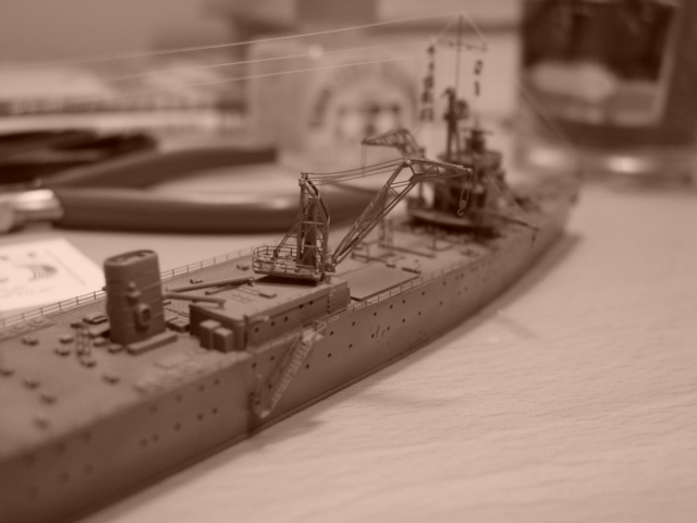 크레인 등의 부품은 골드메달모델사의 IJN 어거질리 쉽셋을 이용해서 바꿔준 에칭부품입니다. 그리고 함교 상부에 보이는 수병들 역시 GMM제 1/700 피규어셋 입니다.