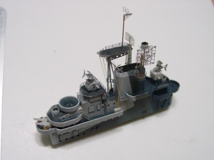 어느정도 에칭으로 된 각종 레이더와 센서류를 설치한 뒤의 사진입니다.