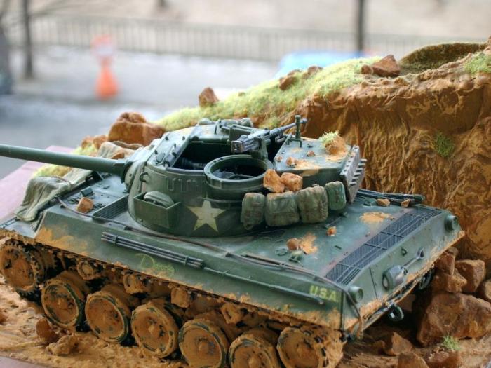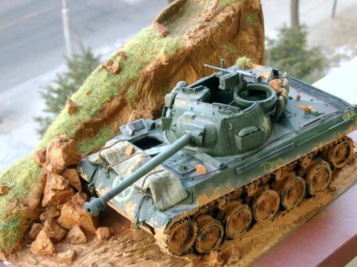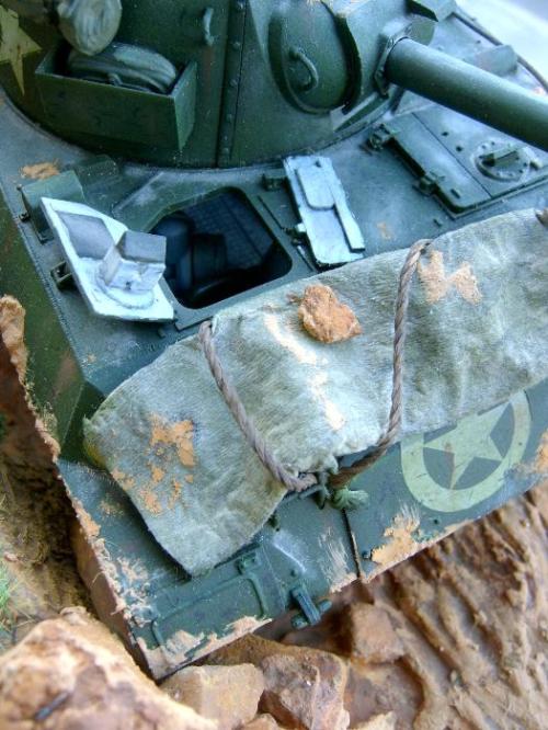 마찬가지로 왼쪽 캐터필러를 가리기 위해 흙을 잔뜩 묻혔습니다. 대담하게 팍팍 발르라는 말에 생각없이 칠했더니 덕지덕지가 됐군요. 베이스의 칠은 수채물감을 사용했으며, 원래 의도에 없던 베이스라 마무리가 잘 안되었습니다. 실내에서 찍은것하고 밖에서 찍은것하고 색이 많이 달라 보입니다.