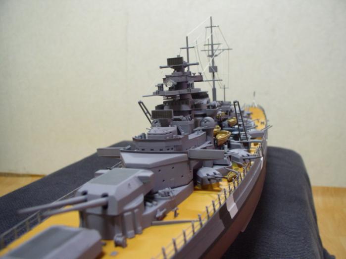 갑판색은 아카데미 에나멜 오렌지+베트남 브라운+타미야 옐로우를 섞어서 만들어 봤습니다. 다른 전함과 달리 비스마르크는 갑판색이 좀 밝은 것 같아서...최대한 박스에 나온 사진과 비슷하게 만들려고 노력했습니다.