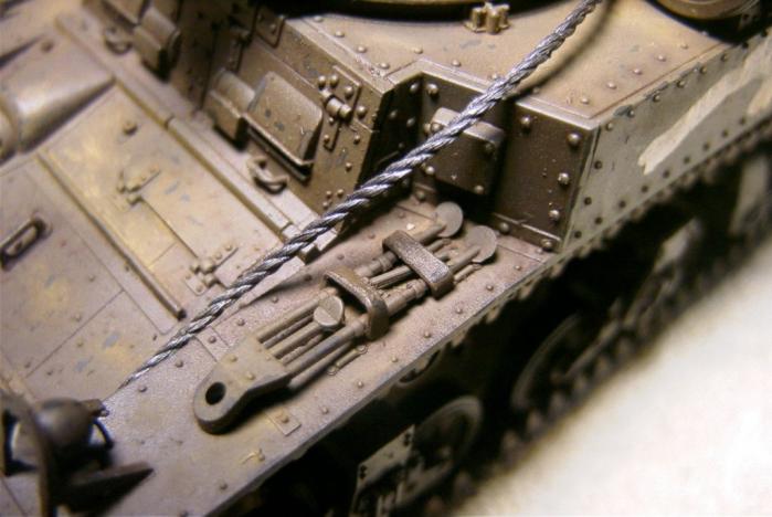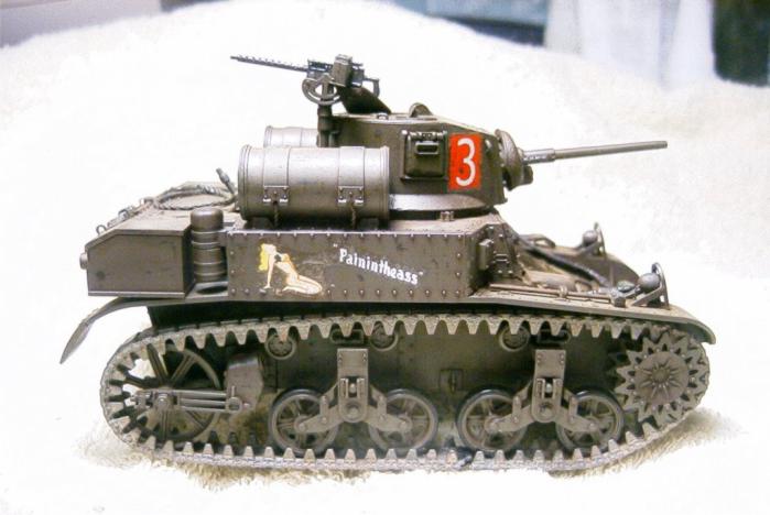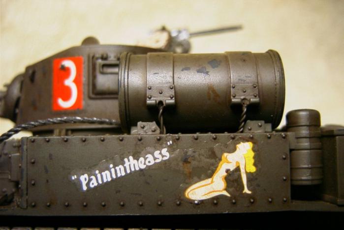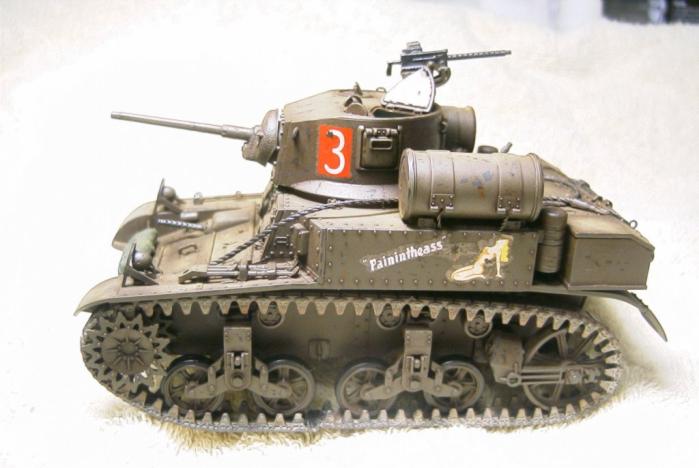 태평양 전쟁에 투입된 미 전차들의 경우 유럽 또는 아프리카 전선과는 달리 추가 장비들을 많이 싣고 다니지 않았다고 해서 별 다른 자이들을 얹어주진 않았습니다. - 대부분 상륙 후 일본군 소탕 후 또 다른 섬으로 배 타고 가야 했기 떄문이 아닐까 생각합니다. -