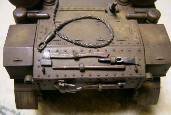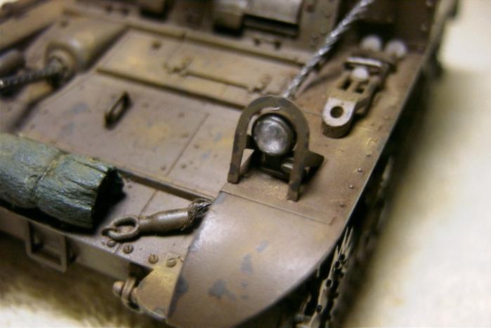 이게 무슨 용도로 사용된 탱크인진 모르겠지만 실차 사진에서 보니 연결 고리로 차체와 연결되어 있더군요. 이 부분 역시 구리선을 꽈서 표현해 주었습니다. 핀바이스로 구멍 뚫고 고정 시키는 작업도 만만치 않더군요.