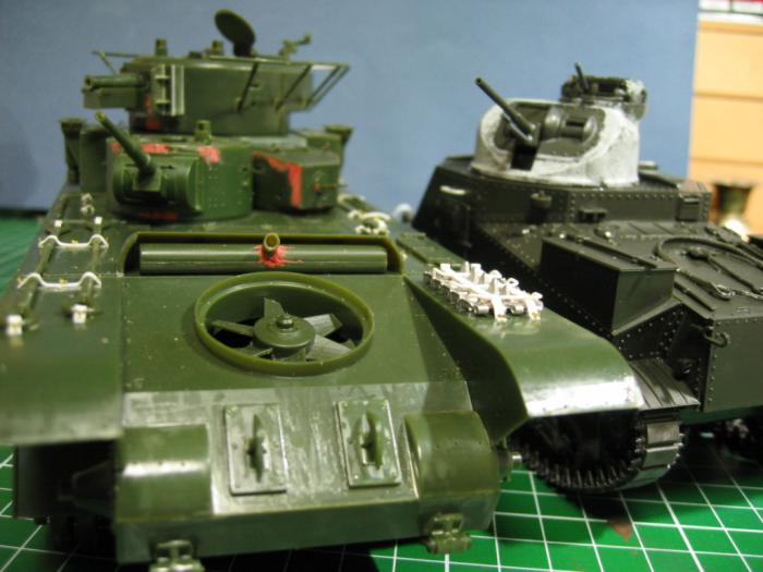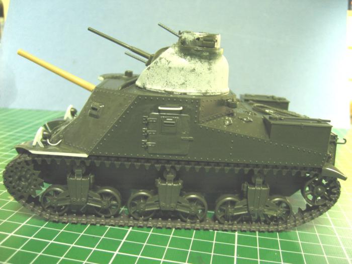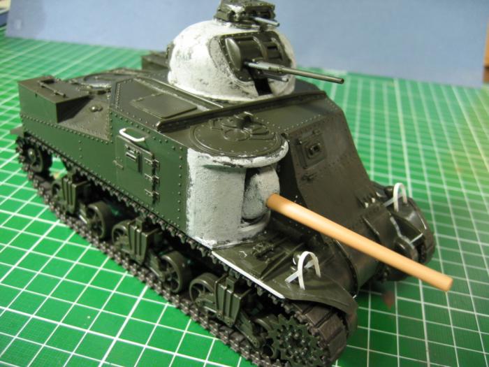 퍼티로 주조질감 내어보고, 기관총과 궤도는 아카데미 기관총 세트와 M4a2 에서 빌리고,75mm 주포는 후기형으로 자작(두꺼운 런너를 칼과 사포로 갈아서...).