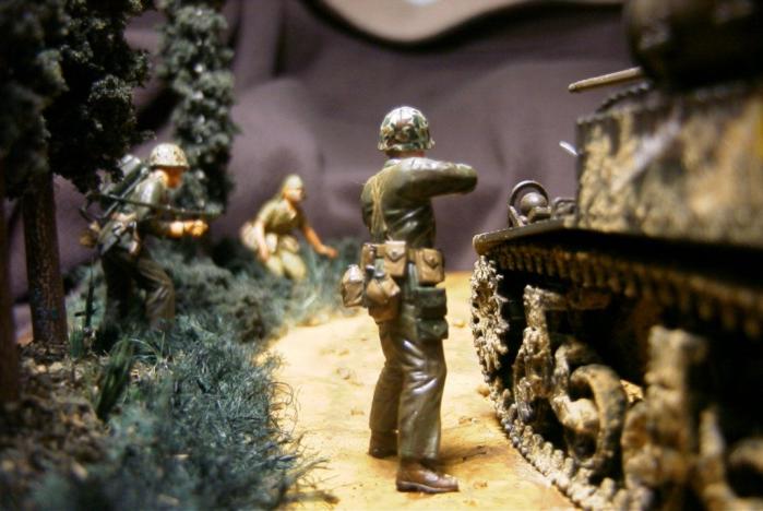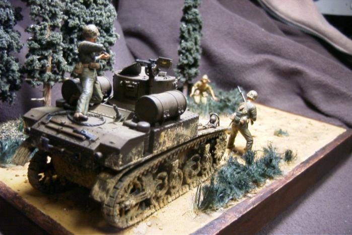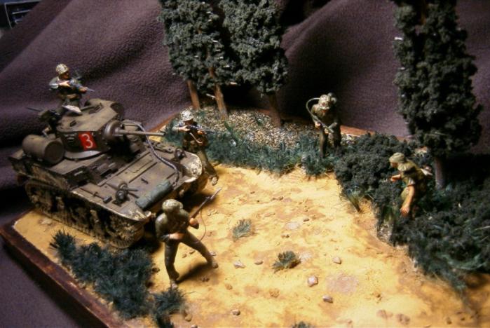 등장키트는 M3A1 스튜어트 전차는 지난 번 갤러리에 올렸던 아카데미제구요 측면과 궤도에 진흙이 묻은 표현을 추가했습니다. 미해병대는 드래곤제, 일본군은 타미야제입니다. 별 수정이나 변경 없이 키트 그대로의 자세입니다.(실력이 안됩니다. T T)