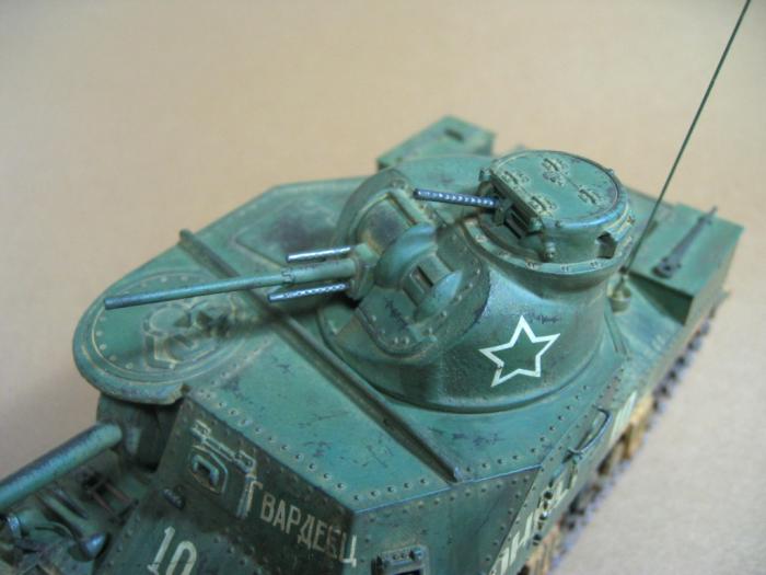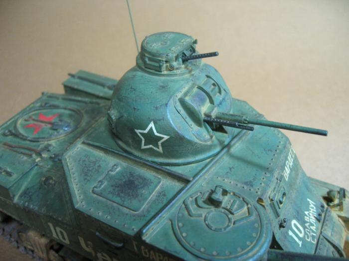 키트의 품질은 그저 그렇고, 제작과정 중에 주포를 자작하고(굵은런너를 깍고 갈아서) 전조등 커버와 연결케이블, 차체전면 기총2개, 안테나, 차체출입문 손잡이, 전면부의 사이드 부분은 플라봉과 판으로 보완했고, 포탑의 기관총 3정은 아카데미 기관총세트에서,궤도는 동사의 M4A2에서 빌려왔습니다.