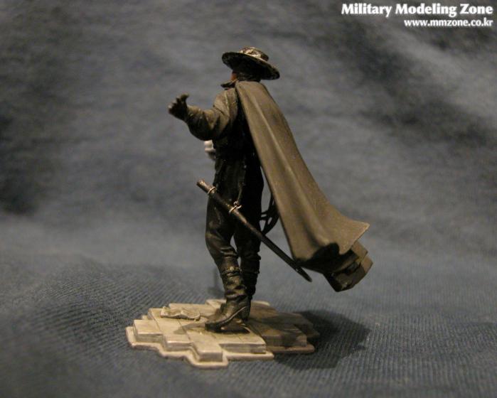 뒷 모습입니다. 이 키트도 이래저래 잔손질이 많이 가는 키트인데 특히나 망토가 전체 메탈제로 되어 있어 고정이 무척이나 힘듭니다. 얼마나 무거운지 고정을 위에 넣은 철심이 휘는 지경입니다. 이럴 경우 순간접착제 보다는 에폭시 접착제를 쓰는 것이 훨씩 고정시키기 용이하더군요.
