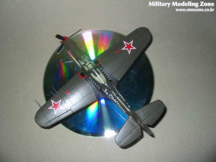 아카데미 1/72입니다. 기본 컨셉은 소련 공군입니다만, 고증과 관계없이 제 마음에 드는 데칼을 이것저것 가져다 붙여서 만들었습니다. 그리고 앞에 무게추를 충분히 넣지 않아서 자꾸 넘어지길래, 못쓰는 공씨디를 가져다가 순접으로 붙여 버렸습니다. ;;
