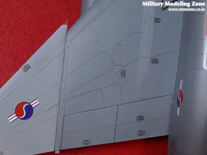 태극마크는 아카데미 F-51무스탕(1/72) 키트에 들어있는 데칼을 이요하였고, 나머지 NO PUSH 와 NO STEP은 제가 제작하였습니다. 하지만 실제 기체에는 NO PUSH 부분은 허니콘 모양이 쓰이지 않구 그냥 글자만으로 데이터 마킹이 되어있습니다.