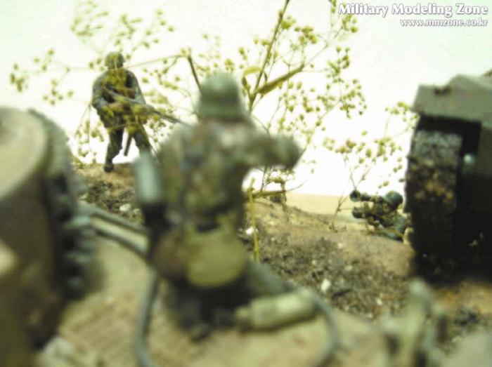 타이거를 따라 조심스럽지만 재빠르게 진격하는 독일군 병사입니다. 당시 아르덴느는 상당히 탱크 진격에 불리한 조건의 토양이었다고 합니다. 진흙밭....