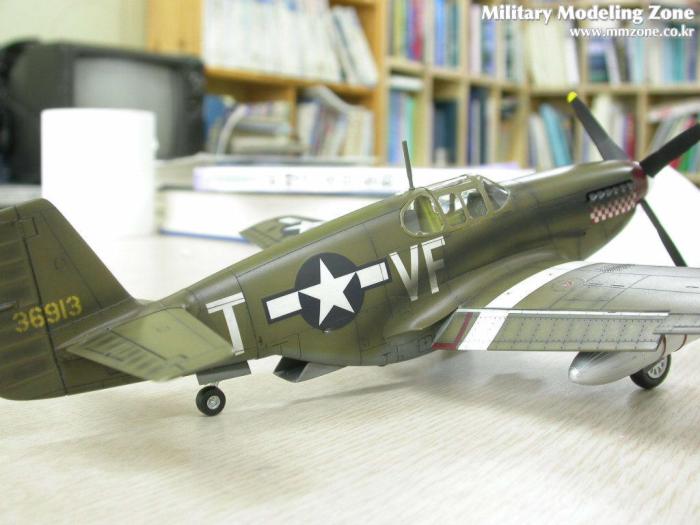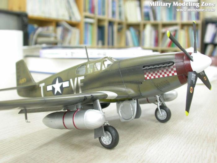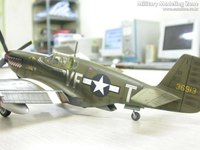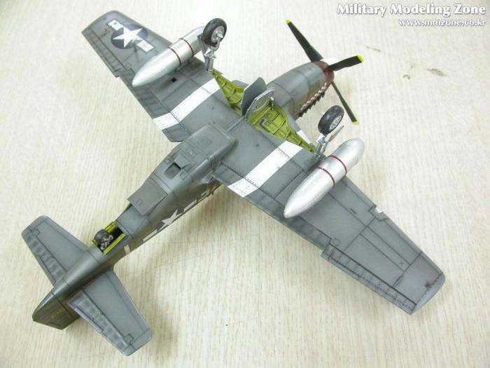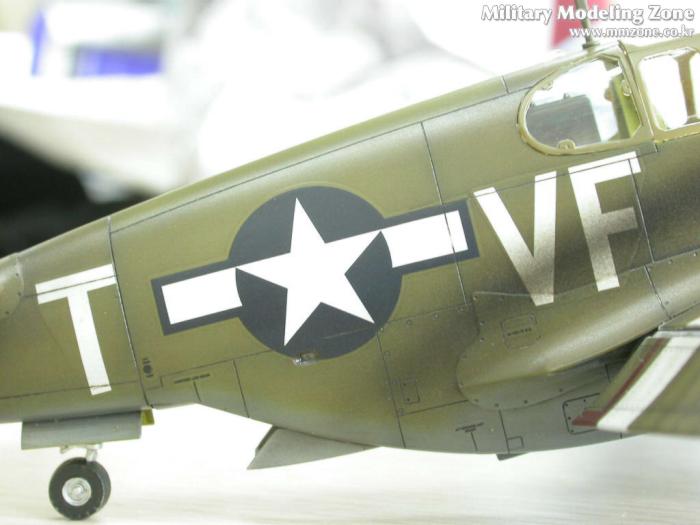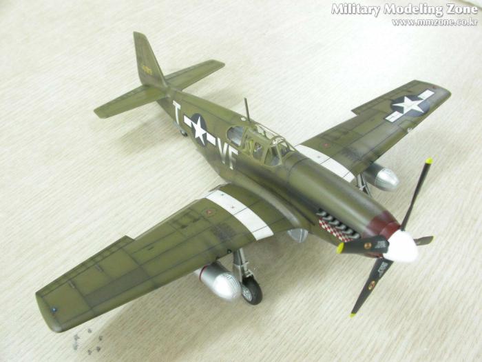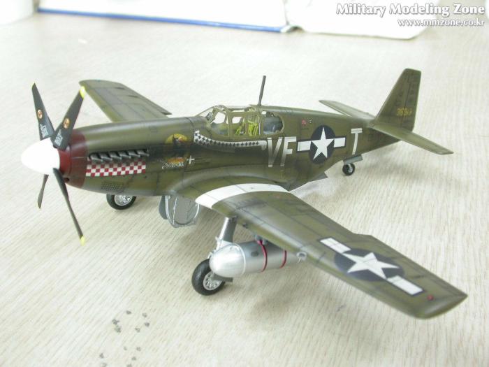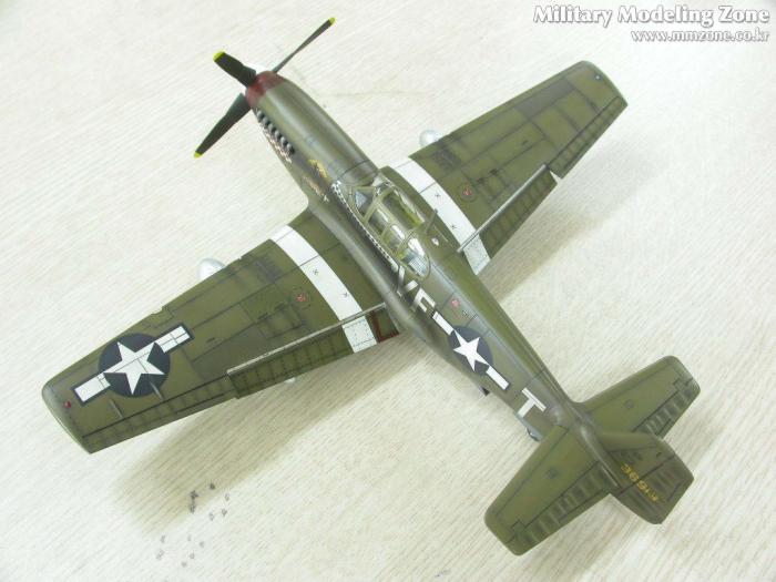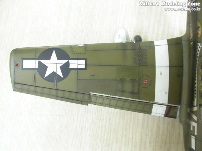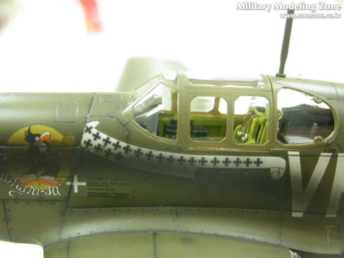 배기구의 그을음은 어떻게 할까 고민하다가 아무래도 너무 깨끗한건 어색할 듯 해서..P-51 스쿼드런에서 찾은 한장의 사진을 근거로....조금은 심하게 뿌렸습니다. 아쉽지만 앵무새인지 까마귀인지....그녀석의 절반 이상이 그을음에 묻혀버렸네요....