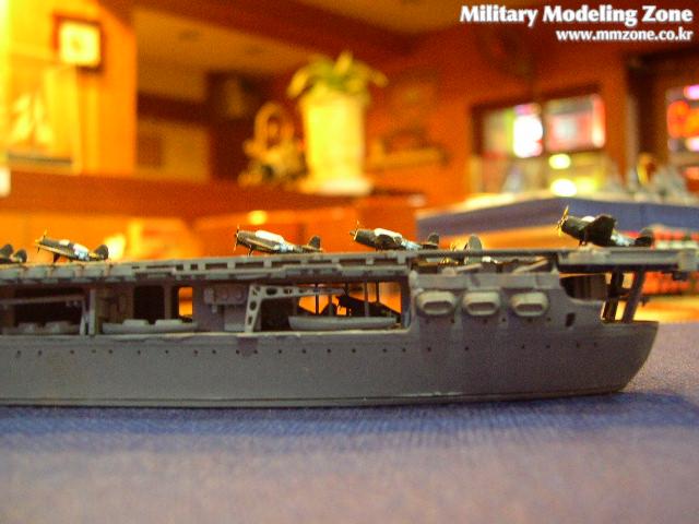 비행격납고를 개방하여 3대의 함재기를 배치하였습니다