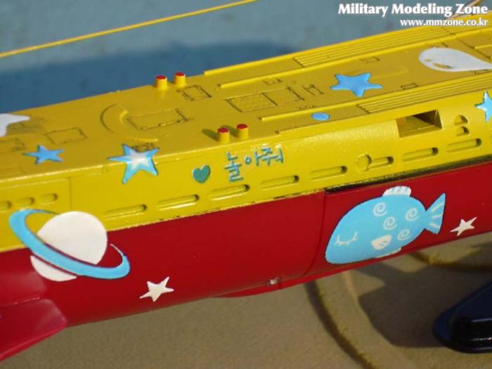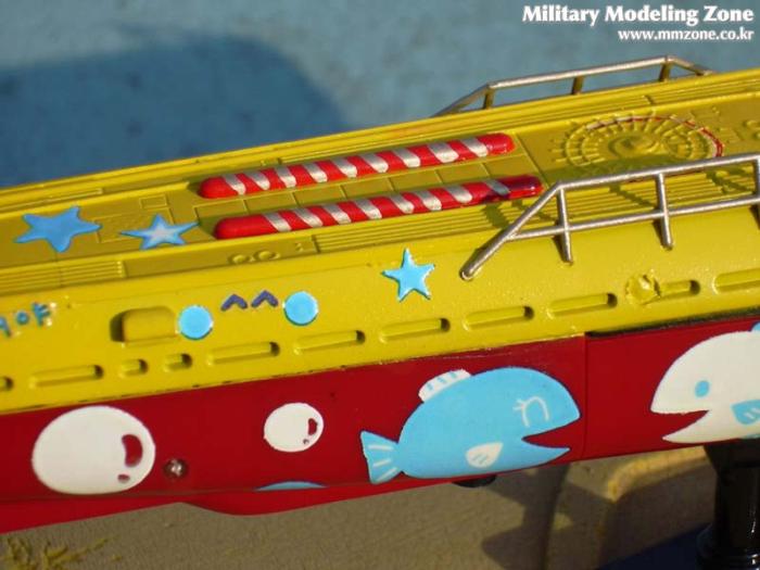 군용 잠수함을 철저히 아이들이 좋아할 만한 무늬와 도색으로 꾸며 봤습니다.