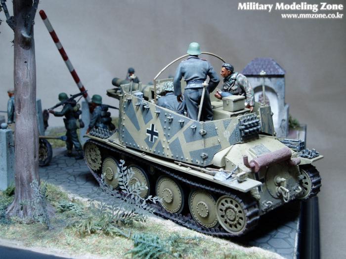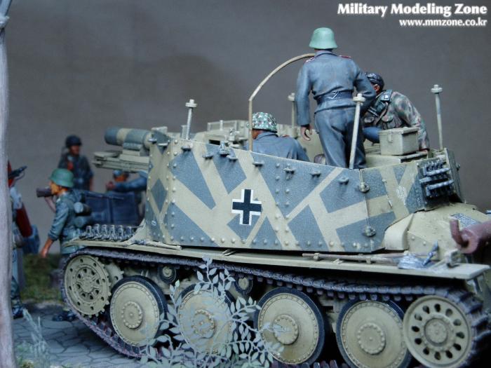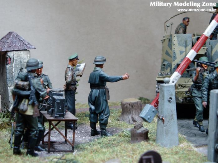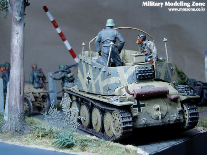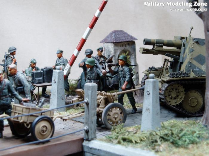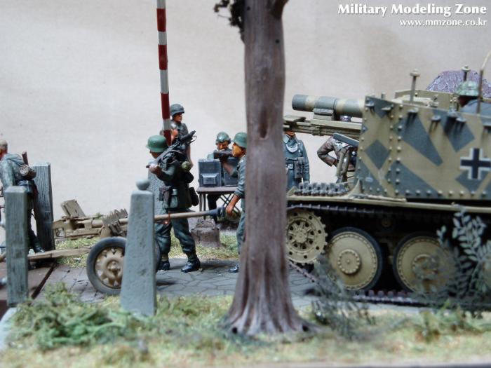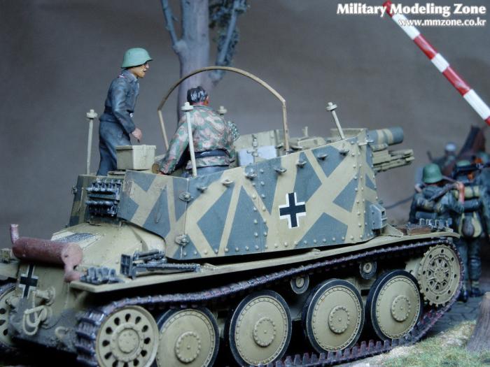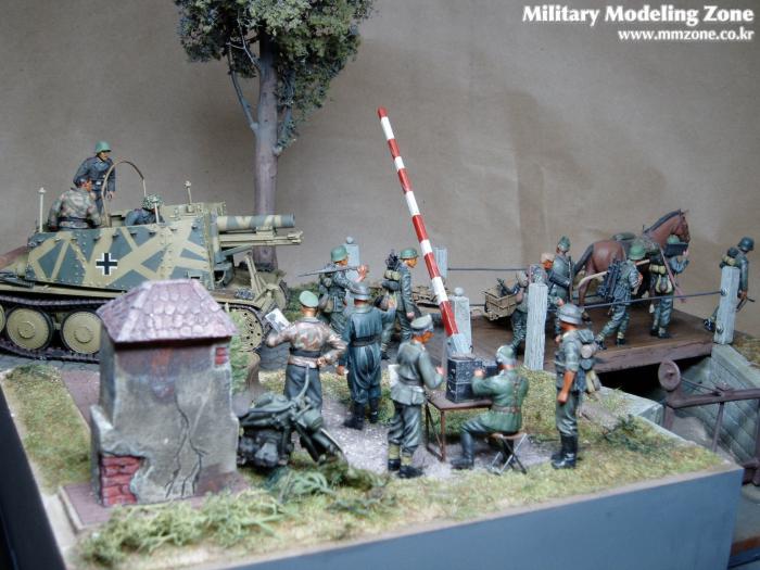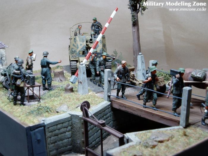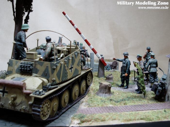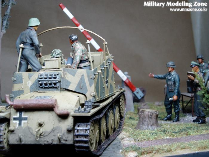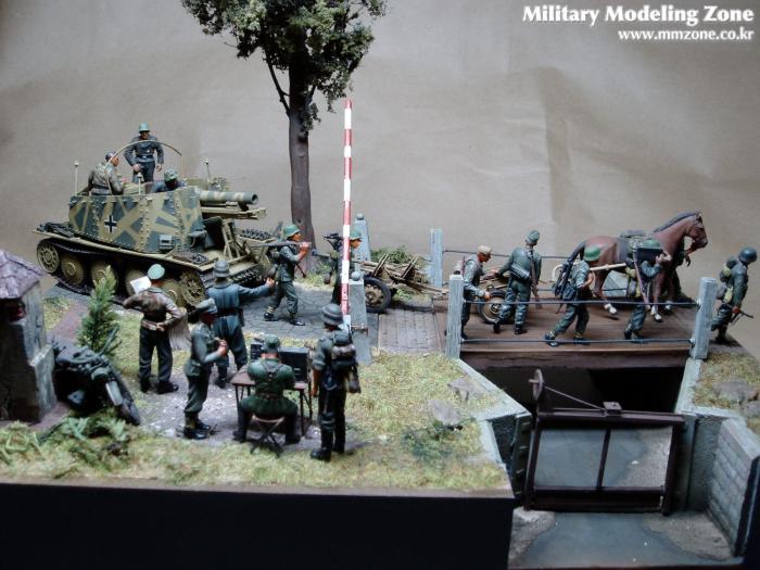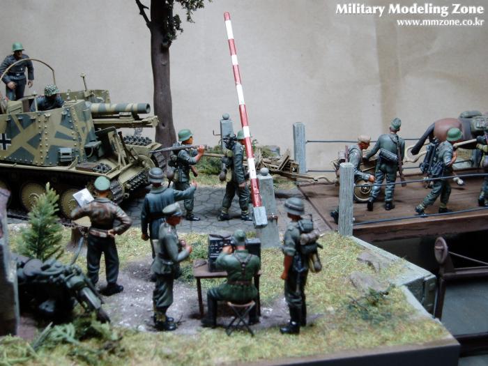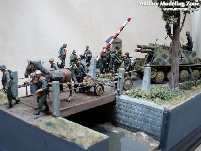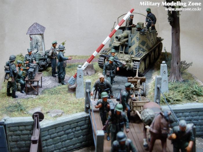 제목은 "Strong enough"로 했는데 배경은 1944년 여름 노르망디 전선입니다. 38(T) 그릴레 위에 있는 병사가 길가에 서 있는 장교에게 앞에 있는 조그만 운하 다리가 전차가 건너 가기에 충분히 튼튼한지를 물어 보는 것으로 설정했습니다.