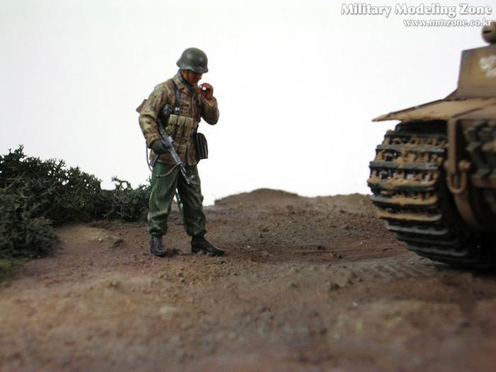 지도를 보다가 의견이 분분한 듯 전차장은 길가에 서있는 척탄병에게