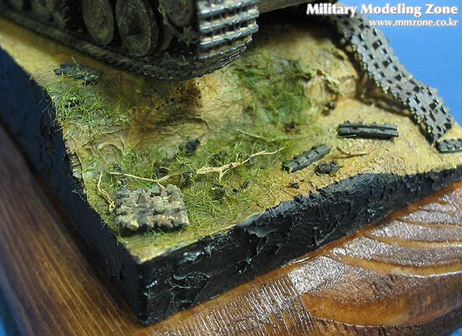 기본도색에는 타미야 에나멜을 이용하고 필터링, 치핑, 파스텔 , 피그먼트를 적용했습니다. 방치된 차량이라고 해서 무조건 다 타 버리고 먼지를 흠뻑 뒤집어 쓰고 있지는 않을 것이라는 생각에 과한 웨더링을 하지는 않았습니다.