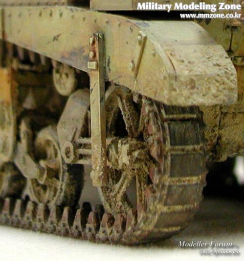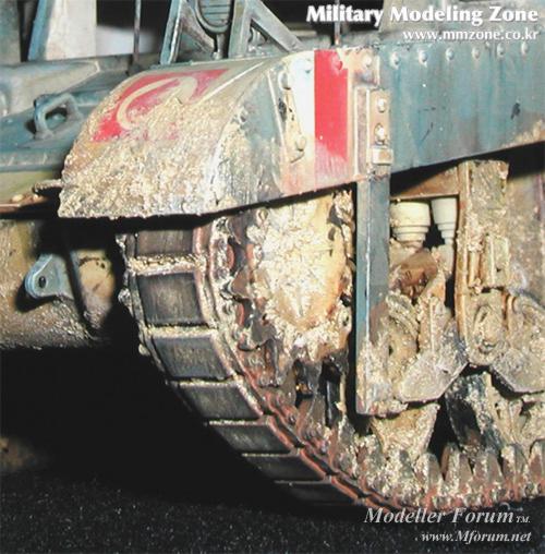 궤도 클로우즈 업 입니다. 일반 고무 궤도에 소다와 에나멜 혼합물로 흙표현을 해주었습니다... 아프리카를 생각하면서요^^
