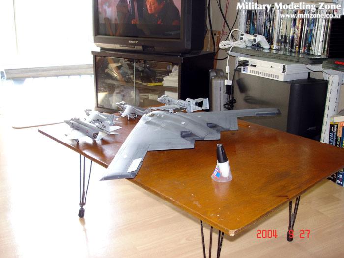 B-2는 정말 해도해도 너무한다 싶게 잘 안맞고 뒤틀어져서 만들다가 중간에 그냥 포기한 넘입니다. 그래도 이정도 마무리한게 다행이다 싶기도 하지만 70% 정도의 공정에서 중단하고 방치중인 놈입니다.