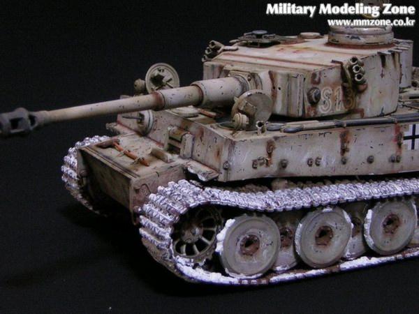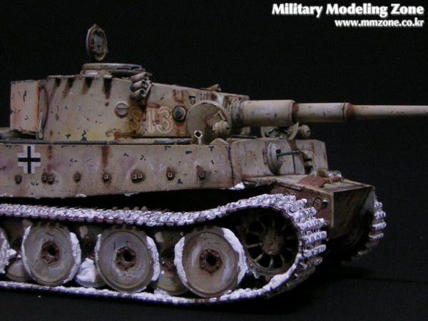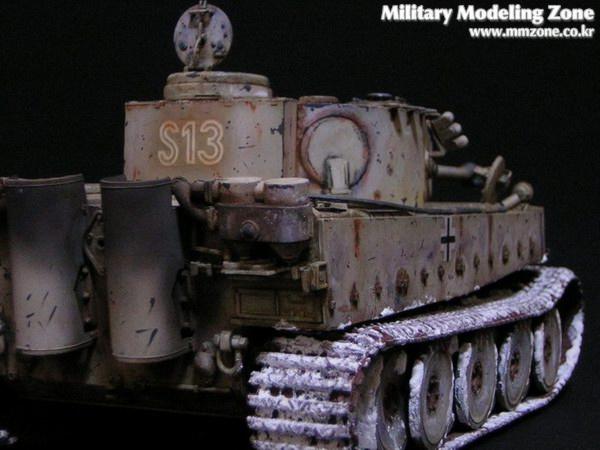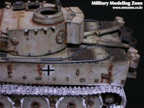 아카데미 타이거 전기형을 고정구 정도 디테일업 하고 흙받이를 모두 제거한체 동계형으로 재현해 보았습니다. 궤도 눈표현은 베이킹 파우더를 사용해 보앗는데 의외로 부풀어 올라서 의도한바와는 다른 모습이 돼어 아쉽습니다. 부풀어 오른 파우더를 털어내고 긁어주었더니 상당히 부자연 스럽네요.