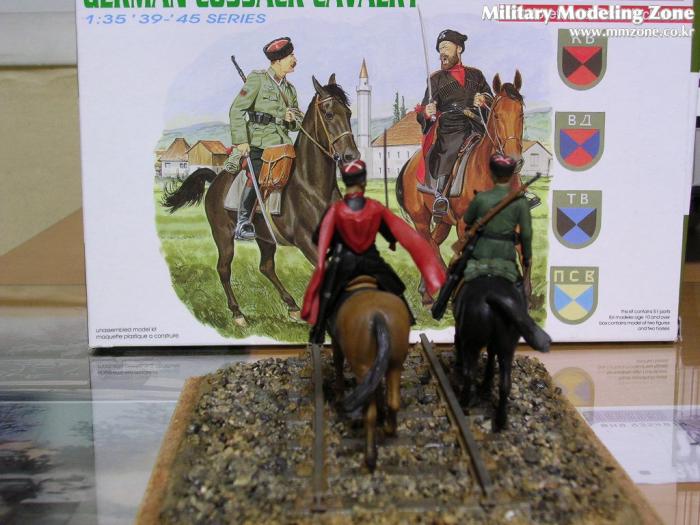 독일군 COSSACK 기병입니다. 철로 위에 철마(鐵馬) 대신 기마(騎馬)를 올려 보았습니다. 제품은 드래곤제입니다. 품질은 정말 좋더라고요