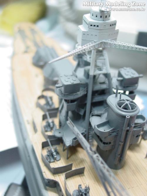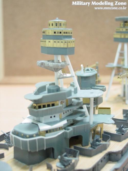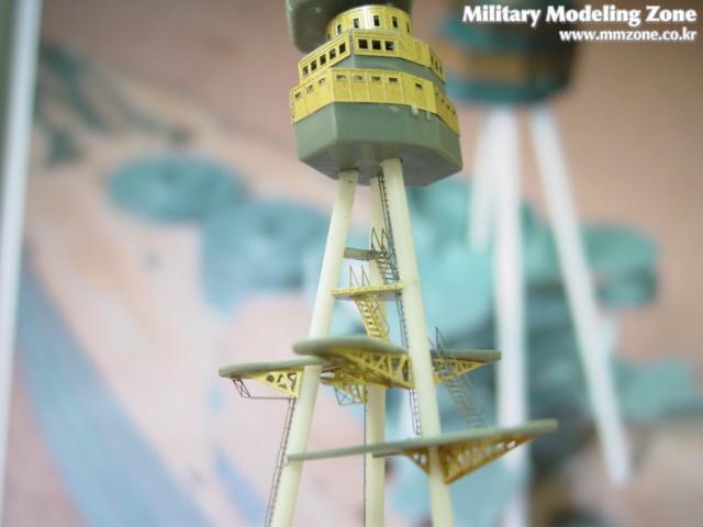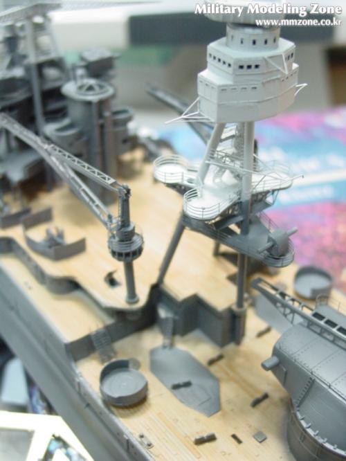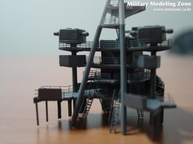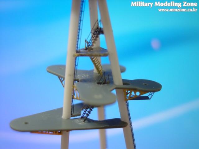 아리조나의 메인 마스트 입니다. 킷의 트라이 포드가 보기 민망하게 사다리 비슷한 몰드가 있는데, 2밀리 프라봉으로 교체 했습니다.