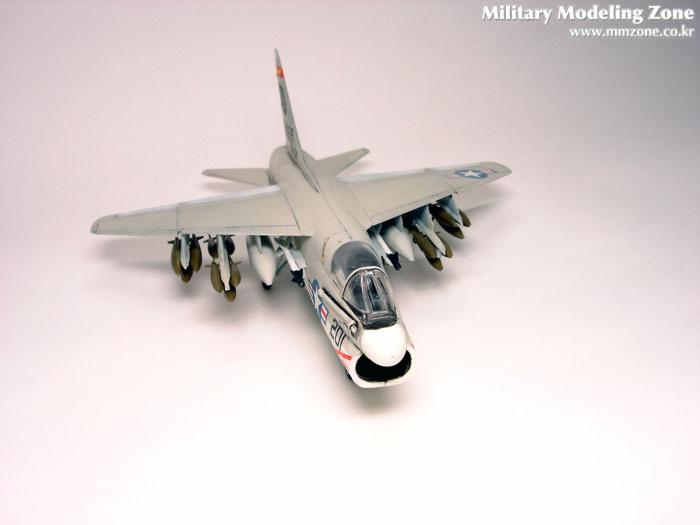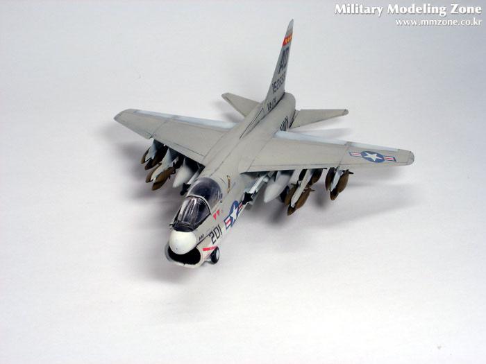 A-7A Corsair II 타미야제품으로 1/100 스케일입니다. 보기 드믄 스케일입니다만 조립성의 타미야가 거의 완구 수준으로 내 놓은 스케일이라고 보시면 됩니다. 아카데미도 1/100 스케일의 F-14와 F-15가 있죠. 그러나 이 제품은 1/144 스케일 만도 못한 디테일로 다소 실망스럽습니다. 제가 좋아하는 A-7 인지라 만들게 되었습니다.