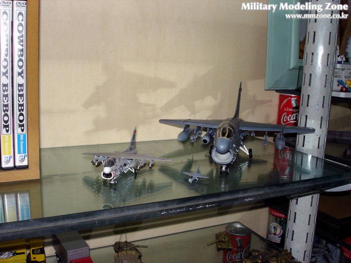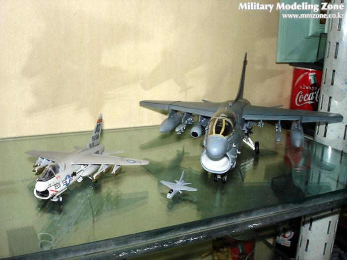 조금더 확대한 사진은데 앞에 작은것은 타미야의 1/350 스케일의 항모용 A-7 입니다.