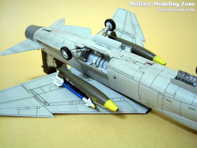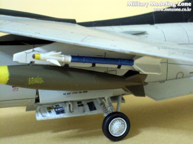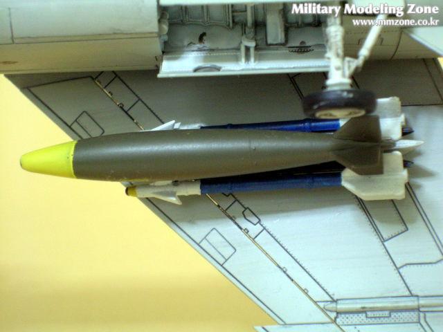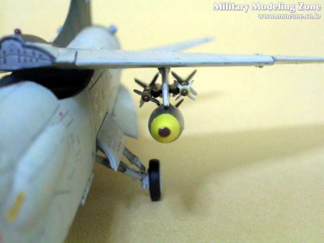 하면과 캐노피 뒷부분의 패널을 다시 파주어야하고, 특별히 개조한 부분은 파일런으로써 처음보는 방식이었습니다. 실제로 이런 파일런이 존재하는지는 잘 모르겠지만, 애니메이션에서 나오는 그대로 제작해 봤습니다. 무장중 폭탄은 하세가와 별매키트를 사용하였으며, 앞부분을 좀 개조하였습니다.
