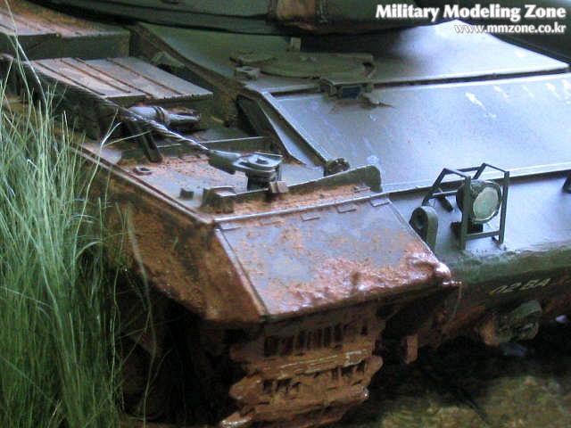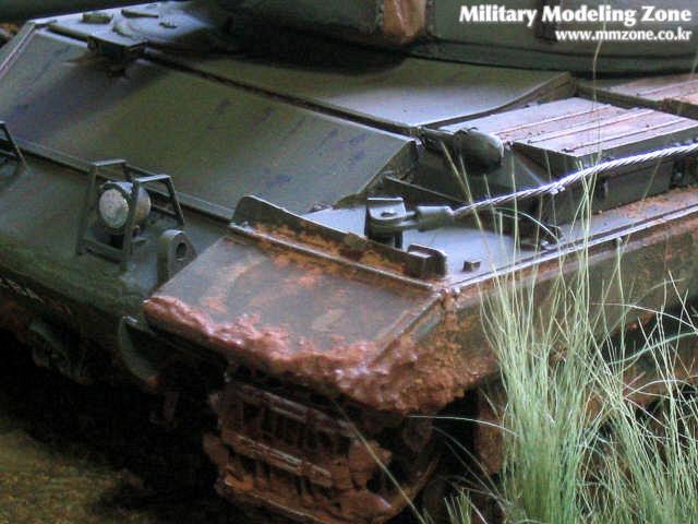 수풀의 표현은 Hudson & Allen 제품, 색상은 험브롤 에나멜 Bronze Green 으로 칠했는데, 실차와 색상은 거의같지만 모형으로 칠해놓고 보니 그냥 시커먼 다크그린이라 두번 다시 사용하고 싶지않더군요. 기본도장후 유화로 필터링, 워싱을 해주고 드라이브러싱, 치핑등등 할건 다했습니다.