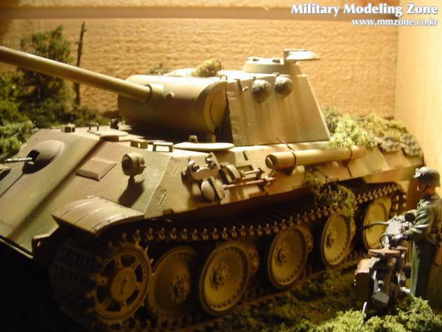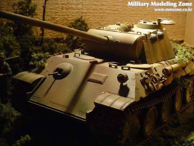 타미야제 구판 판터 A형입니다. 부품이 투박하며 디테일이 생략되어 있어서 요즘 나오는 신판과는 비교 자체가 어렵습니다. 스트레이트 빌딩으로 제작, 3색 위장무늬를 적용하였습니다. 가벼운 마음으로 만들기 좋은 키트입니다. 가격도 저렴합니다. 신형 판터가 50불에 육박하는데 비해 이 키트는 구형이라 20불이 안되는 가격에 구할 수 있습니다.
