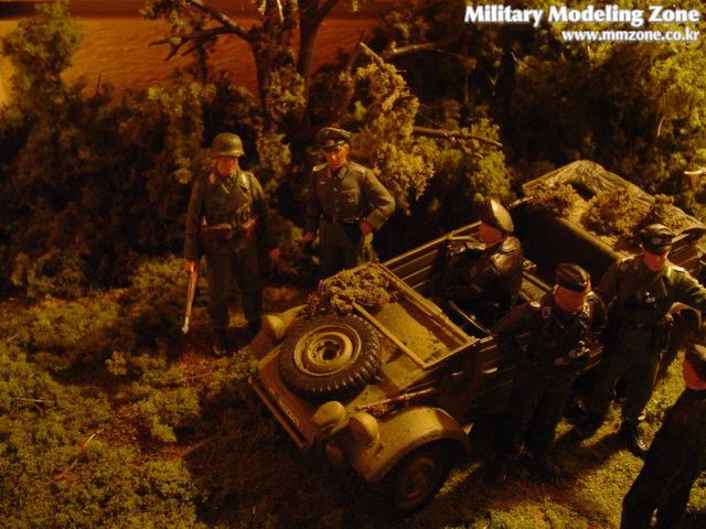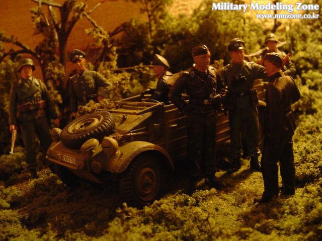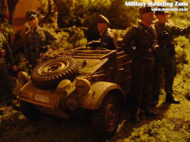 퀴벨바겐과 전차병들, 그리고 기갑척탄병들. 사용된 키트는 타미야제 신판입니다. 인형들은 드래곤사의 교도기갑사단, 타미야의 전차병 휴식세트 및 전선정찰팀(Frontline Reconaissance Team)에 들어있는 인형들을 사용했습니다.