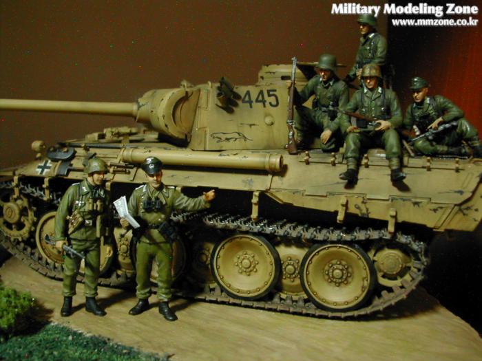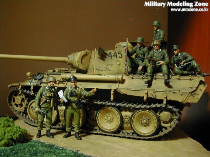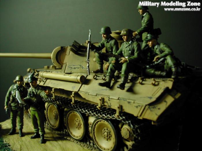 예전에 만들었던 드래곤의 PANTHER D 전차에 드래곤의 PANZER RIDERS 인형들과 간단한 베이스를 추가했습니다.