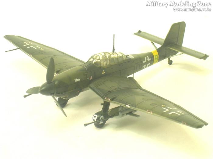 아카데미 1/72 JU-87G-1 STUKA TANK BUSTER 입니다. 1/72 스케일임에도 불구하고 기체가 거구라서 그런지 전에 작업했던 제로기보다는 작업이 좀 나은것 같습니다. 위장은 RLM 70/71/76 원래는 기체 하부가 65로 지정이 되어 있던데 색이 없어서..^^;; 그냥 비슷한 색으로 했읍니다.