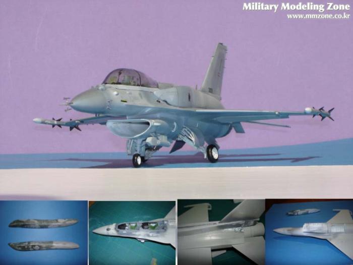사용키트는 48스케일 이탈레리 f-16b/d를 베이스로 하세가와 키트의 일부(에어인테이크, 에어브레이크, 무장)를 조합했습니다.