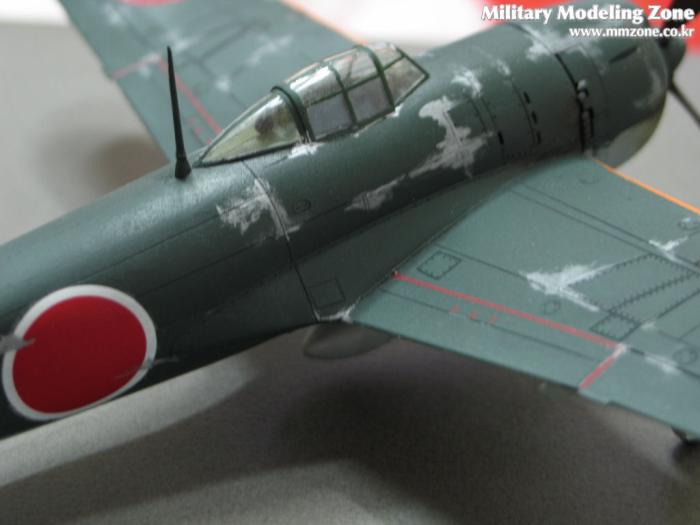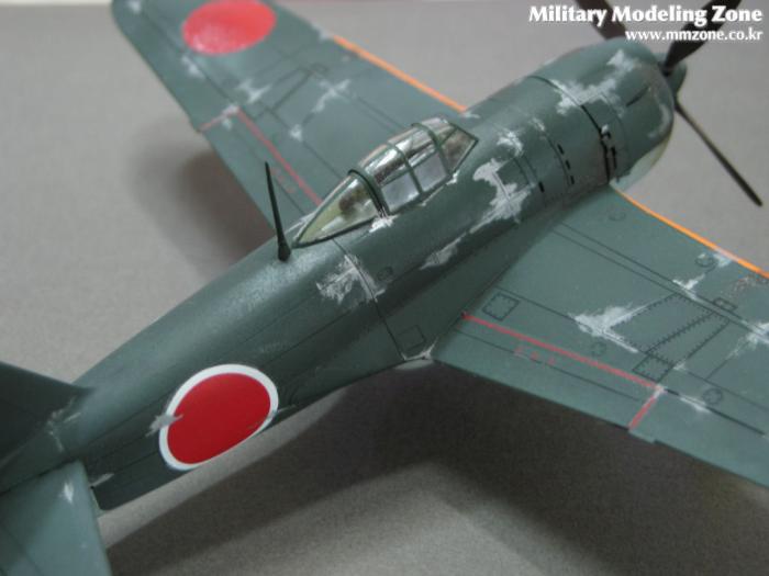 상면색은 군제 락카 15번 IJN green (Nakajima)에 검정색을 약간 섞었고, 하면색은 45번 IJN gray를 이용했습니다. 페인트 벗겨진 표현을 제멋대로 했습니다. 하다가 보니까 feel(?)을 받아 다소 심하게 했는데 지저분해 진 것같아 속이 아픕니다...
