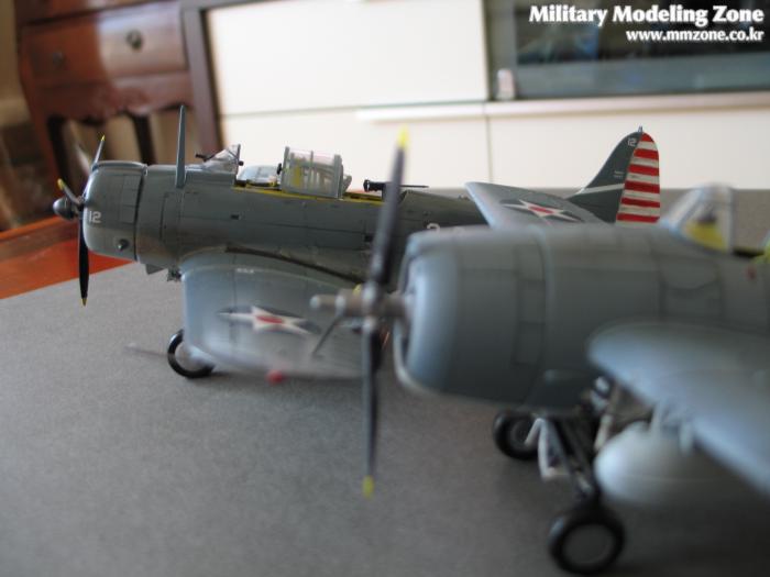안녕하세요, 초보모델러 정우경입니다. 좀전에 같이 완성했던 F-4F를 올리고, accurate minature의 SBD-3를 올려봅니다. 도장은 두 기체 모두 태평양전쟁 초기 형식으로 하였습니다. 같은 비행대 소속이면 좋겠지만, 데칼이 없어서 도장만 비슷하게 해보았습니다.