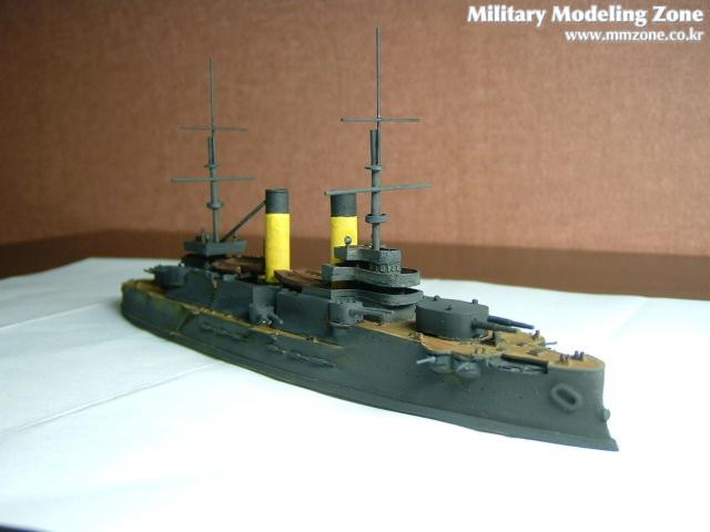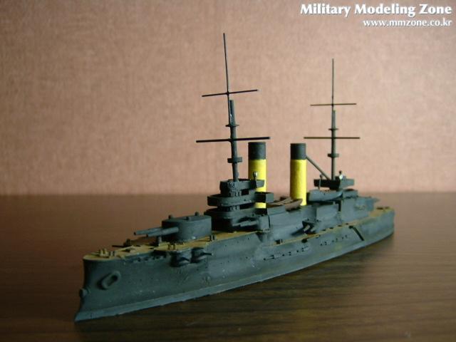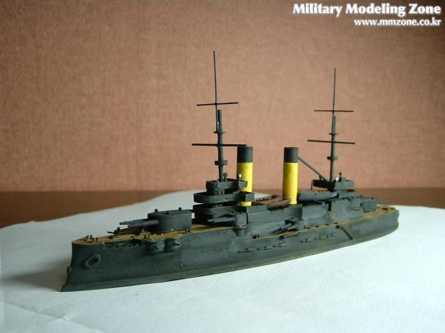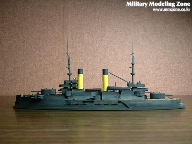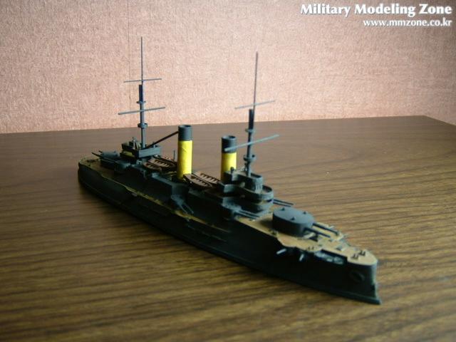 프랑스에서 건조중이었던 체사레비치의 도면을 근간으로 설계되었기때문에 프랑스식의 미끄럼경사인 텀블홈이 특징인 군함입니다.