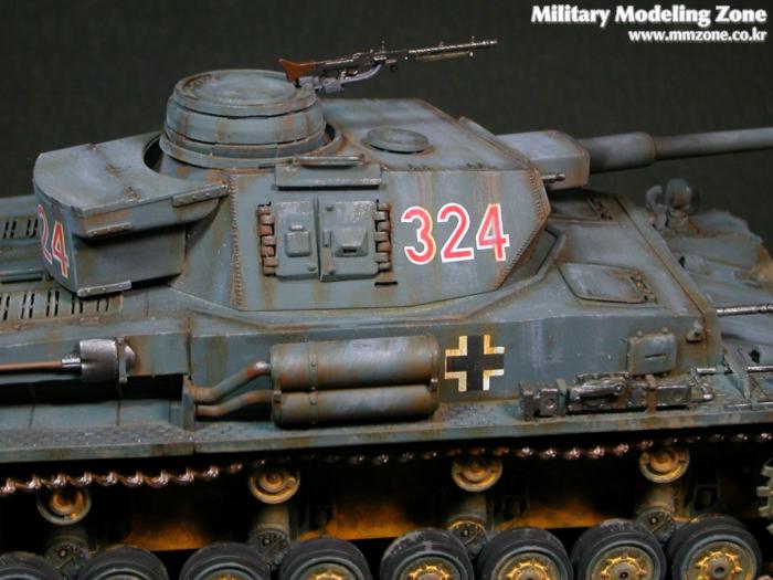 포신의 끝부분을 연필가루로 먹였었는데 색조가 약한것 같아 다시 파스텔 검정으로 넣고 중심부분도 그을음의 표현을 넣었는데 제대로 표현한건지 모르겠네요. 전차의 움직임과 각부위의 기능을 잘모르니 도색이나 웨더링 할때의 한계가 느껴지더군요.막연히 상상해서 표현한 부분이 많습니다.모형을 하려면 대상에 대하여 연구와 공부가 필요하다고 느껴지지만 매번 그냥 만들게 되는 이 한심한 심정..녹표현이 과한것 같기도 하고 암튼 웨더링이 어색합니다.