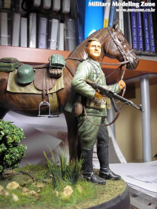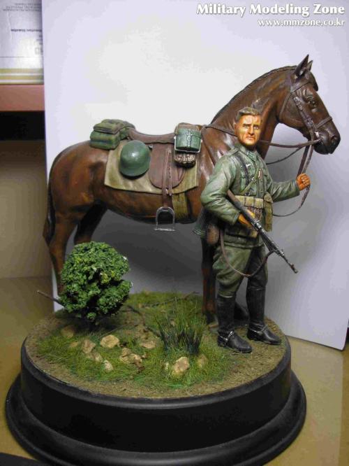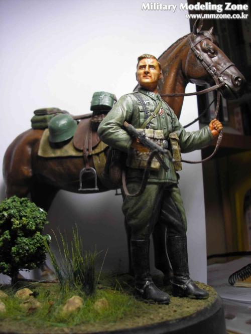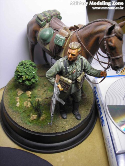 1/16 스케일 드래곤 키트 기마병입니다. 얼굴과 말은 유화물감으로만 칠했고 나머지는 전부 에나멜입니다. 코팅하지 않은 상태입니다. 만든지는 1년 정도... 원형 프라스틱 베이스는 원래 키트에 딸려 나오는 거고 그위에 잔디 깔고 나무심고 돌 박고 나무가지 붙였습니다.