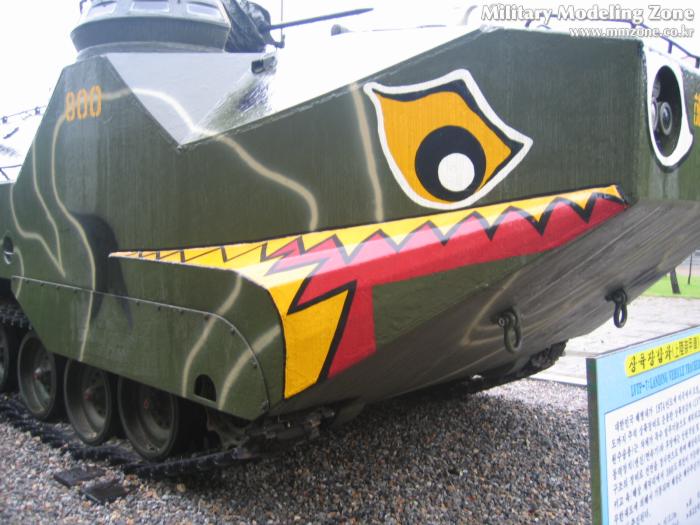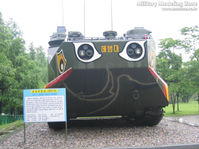 평촌 자유공원내에 있는 자유총연맹에 LVT-7 이 전시되어 있어 자료하시라고 올립니다. 상태가 매우 좋고, 현역에서 은퇴한 지 얼마안 된 듯 합니다. 비가오는 일요일 오후라 차위에도 올라가서 찍어올립니다