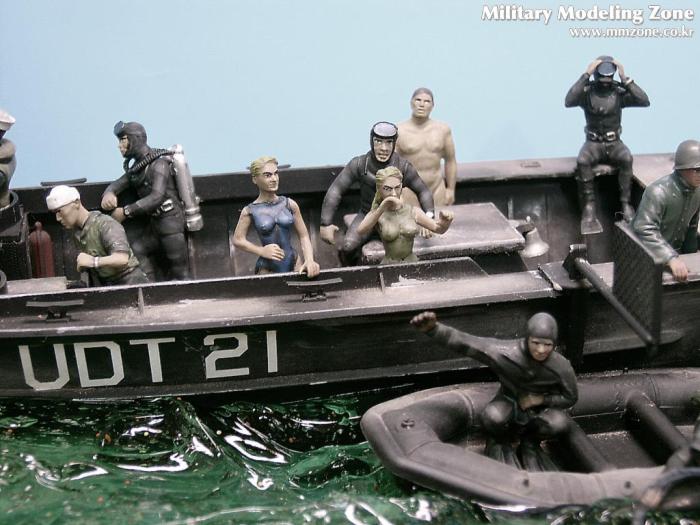 부대에 있었을때(특전사 707 특수임무대대) 해상 훈련가면 참 힘들기도 하고 목숨걸 일도 있었지만 재미도 있었습니다. 부대에 UDT훈련을 마친 대원들이 많았는데 현지에서의 특수훈련을 재현해 보았습니다. 이번에는 특별히 간호 장교들도 동승했고 보트의 물살때문에 한 병사의 수영복이 물속으로 소실 되었습니다.-실제로 저도 수영복(군용사제)의 단추가 뜯기면서 이런일을 당한적이 있습니다.